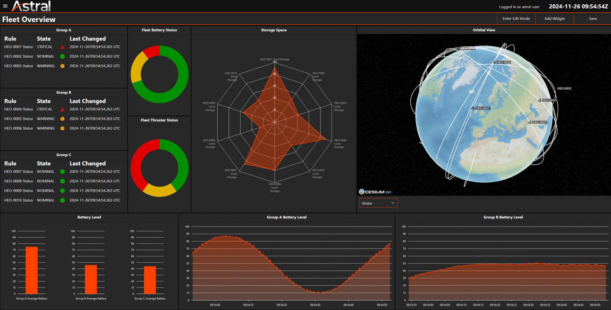 Screenshot of Astral-Dash, the dashboard component of Starion's Astral ground segment platform